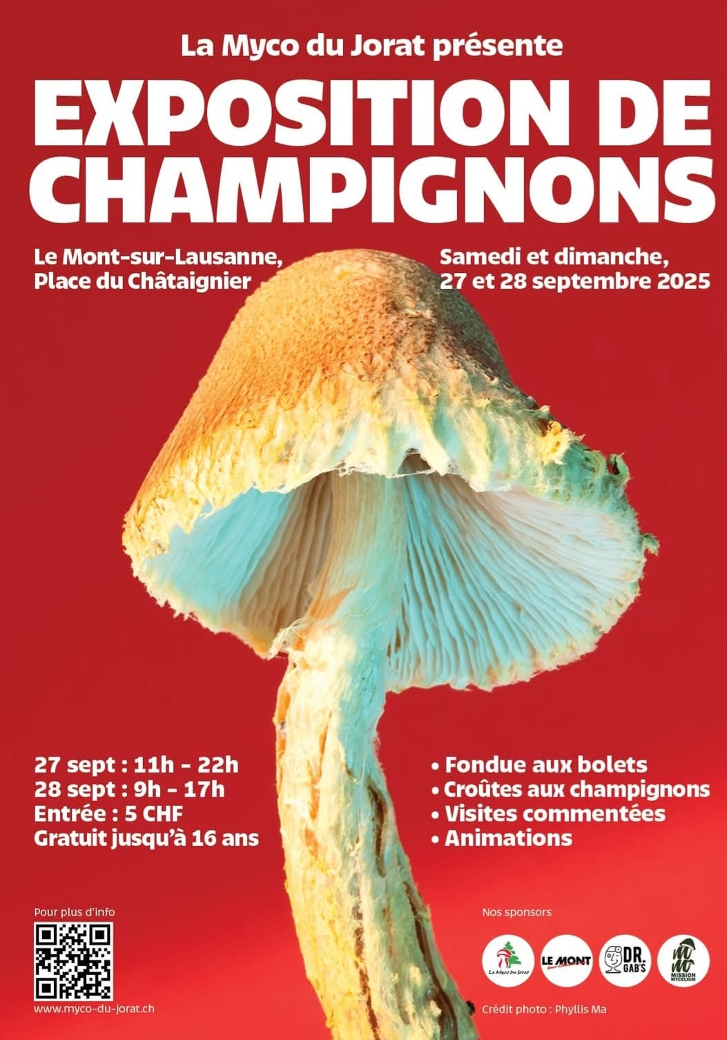 Sa, Di | 27 et 28 septembre 2025 | Exposition de champignons, Le Mont-sur-Lausanne, Place du Châtaignier | lien |